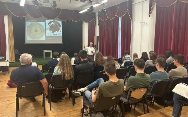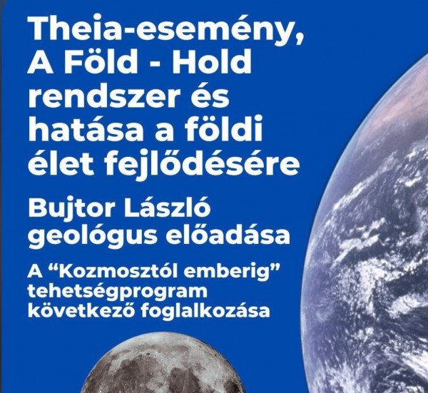 A színházteremben Dr. Bujtor László geológus, az Eszterházy Károly Katolikus Egyetem előadója tartott lenyűgöző előadást „Theia-esemény – a Föld–Hold rendszer és hatása a földi életre” címmel.